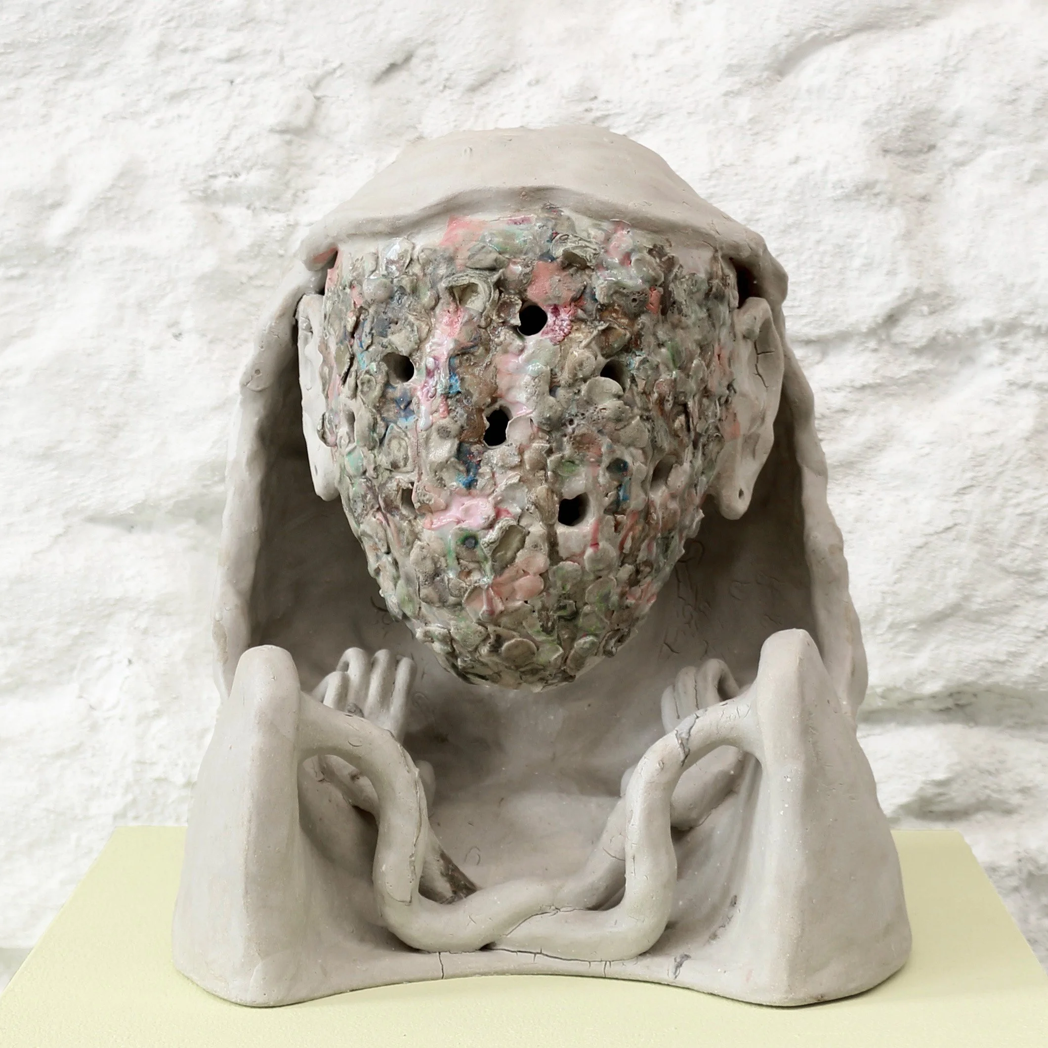 il parle de l’adolescence dont il n’est pas sorti : solitude, âge ingrat, introspection, isolation, hypersensibilité, entre désir de repli sur soi et envie d’altérité il puise dans les médias qu’il consomme, une iconographie ironique et surréaliste pour mettre en céramique ces sentiments qui n’ont pas de nom Il s’inspire des cultures de niche: mèmes, tropes, cartoons, mangas japonais, jeux videos.
